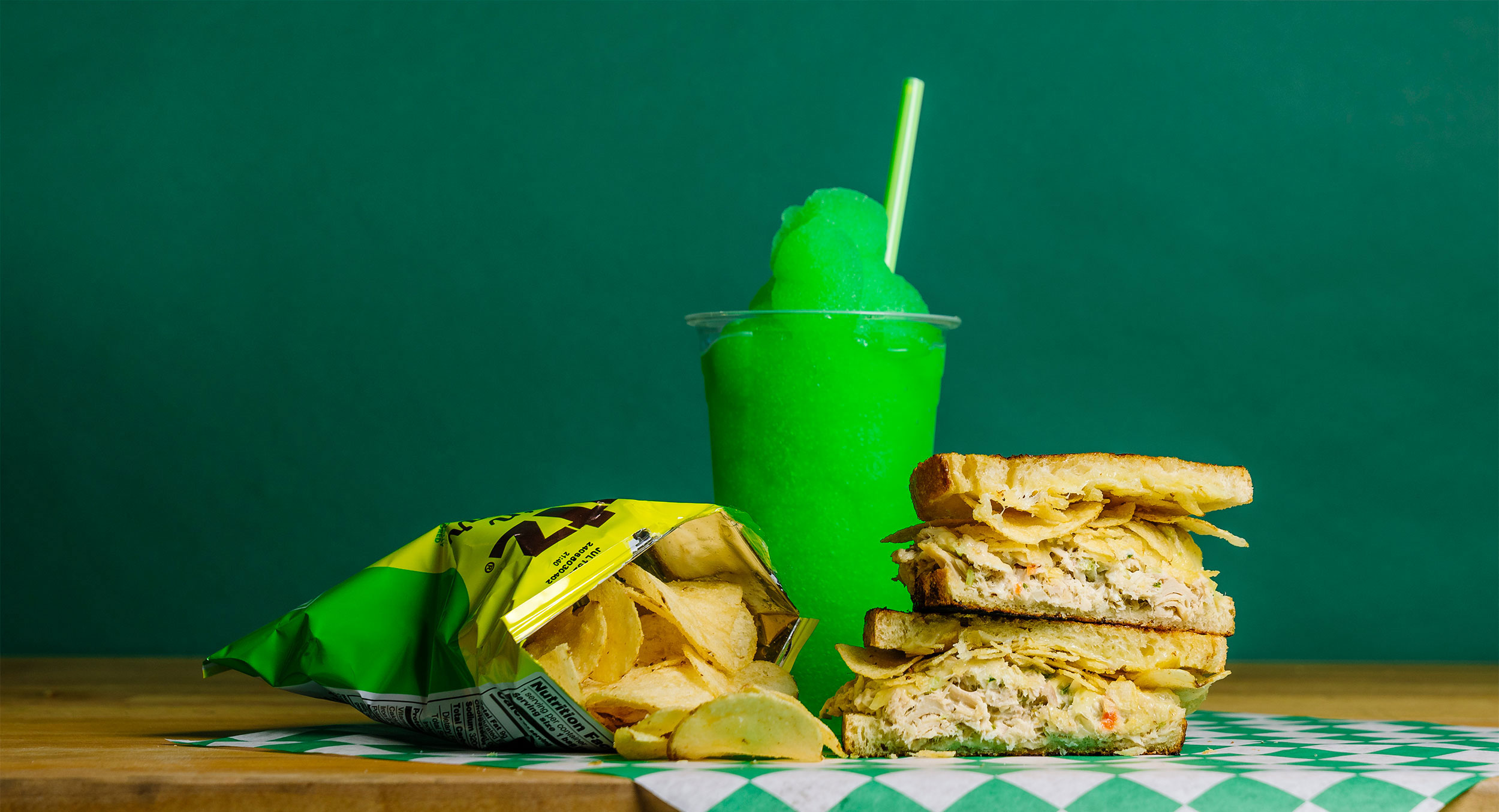 line-caught oregon albacore, white cheddar, potato chips for crunch
